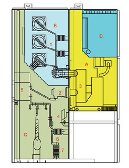 ފަހެً. Circuit breaker compartment B. Busbar compartment