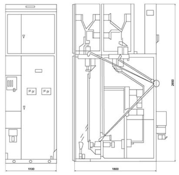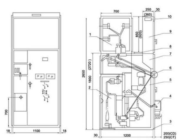 1. Busbar room 2. Cable room 3. Grounding bus 4. Electromagnetic (spring) mechanism 5. New circuit device room