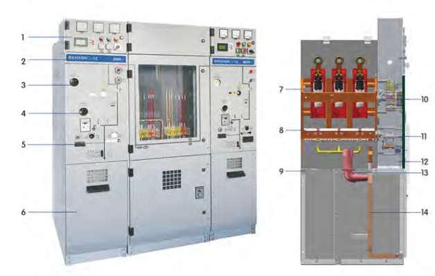5. Live display 6. Cable room 7. Vacuum circuit breaker/load switch