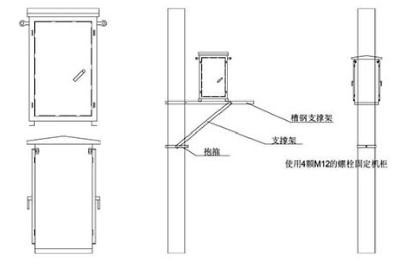 The bottom of the equipment is fixed to the outside of the two channels using four M12 bolts.